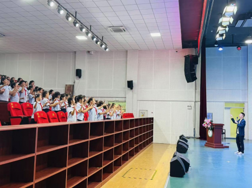 尾聲的 "集體指揮" 環節尤為動人。全場師生隨《歌唱祖國》旋律共同揮臂,歌聲與 "指揮手勢" 交織成動人畫面。這一刻,交響樂不再是遙不可及的 "高雅藝術",而是連接情感、凝聚力量的紐帶,讓孩子們在參與中感受藝術之美,在共鳴中提升審美素養。