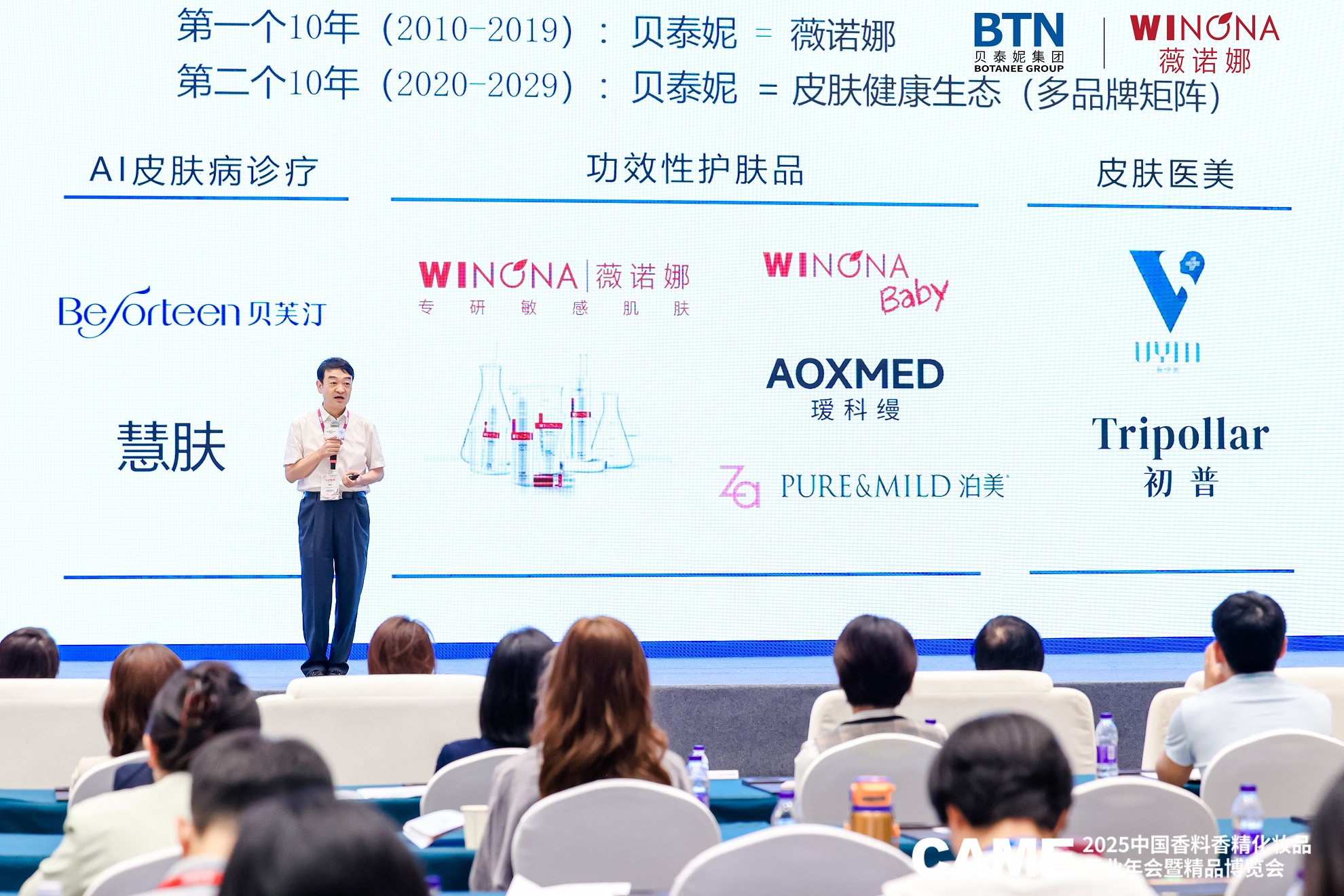 本屆CAME論壇上,貝泰妮集團(tuán)董事長(zhǎng)郭振宇博士帶來(lái)了“醫(yī)學(xué)、科技、品牌與組織進(jìn)化”的主題演講。郭振宇博士從皮膚科學(xué)出發(fā),深入解析了貝泰妮旗下品牌(如薇諾娜)成功背后的邏輯:即以醫(yī)學(xué)研究為基礎(chǔ),以科技創(chuàng)新為手段,將專業(yè)的皮膚學(xué)解決方案轉(zhuǎn)化為安全有效的產(chǎn)品,并以此構(gòu)建強(qiáng)大的品牌護(hù)城河。
