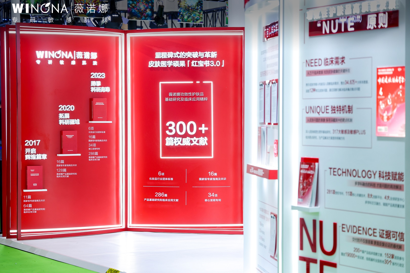 其中,薇諾娜學(xué)術(shù)積淀的代表性成果——紅寶書3.0(《薇諾娜功效性護膚品基礎(chǔ)研究及臨床應(yīng)用精粹》)正是這一體系化努力的縮影。自2017年首版問世以來,紅寶書從僅收錄11篇國家級專家指南及共識、64篇科研與臨床文章,發(fā)展到如今的3.0版本,已匯集300余篇權(quán)威文獻,包括16篇國家級專家指南與共識、34項國家發(fā)明專利、6項行業(yè)團體標(biāo)準(zhǔn)以及近300項基礎(chǔ)研究與臨床驗證成果。這不僅體現(xiàn)了薇諾娜科研體系的持續(xù)進化,也記錄了中國功效護膚學(xué)術(shù)體系的成長與完善。