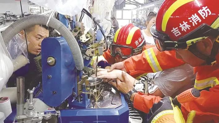 消防救援人員緊急斷針救人 近日,遼源市消防救援支隊接到群眾報警求助,一名工人在進行紡織作業時,因機器發生故障,手指不慎被鉤針穿刺,并卡在機器上無法拔出。該支隊立即出動遼河大路特勤站2輛消防車8名消防救援人員前往救援。 據介紹,消防救援人員到場后,發現這名女子左手的中指和無名指正卡在機器上,13根鉤針深深地扎進了手指指腹中。 為盡快將傷者救出并避免造成二次傷害,消防救援人員決定利用鉗子對鋼針的中間部位進行剪切。 一名消防救援人員在對鉤針剪切時全神貫注,甚至連眼睛都不敢眨一下,其間因疼痛女子一直大聲哭著,其他救援人員也對女子進行安撫,緩解其緊張情緒。 最終經過20分鐘的緊張救援,13根鉤針被全部切開,女員工的左手得以脫困。在場的120醫護人員隨即對她做了簡單處理,并送往醫院救治。 確保人員安全。 1. 檢修機械必須嚴格執行斷電掛禁止合閘警示牌和設專人監護的制度。 2. 對人手直接頻繁接觸的機械,必須有完好緊急制動裝置。 3. 各機械開關布局必須合理,必須符合規定標準。便于操作者緊急停車;避免誤開動其他設備。 4. 對機械進行清理積料、捅卡料、上皮帶蠟等作業,也應遵守停機斷電掛警示牌制度。 5. 嚴禁無關人員進入危險因素大的機械作業現場。 6. 操作各種機械人員必須經過專業培訓,能掌握該設備性能的基礎知識,嚴格執行有關規章制度,正確使用勞動防護用品,嚴禁無證人員開動機械設備。 7. 操作前應對機械設備進行安全檢查,先空車運轉,確認正常后,再投入使用。 8. 工作結束后,應關閉開關。 來源:城市晚報全媒體記者 呂闖 編輯:趙明明