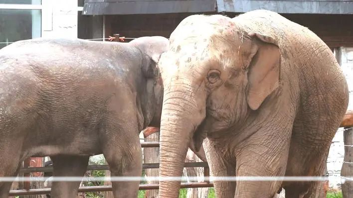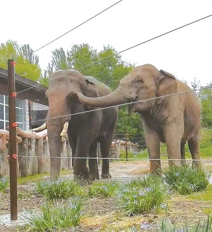 經過一周的熟悉適應,兩頭象已經完成合籠相處,并共同出現在室外展區,這讓張紅軍很高興。張紅軍說,昂亞的性格一直比較溫順,而希希的性格則有些淘氣,所以剛開始他還有些擔心,還好目前來看它們相處得很融洽,應該是彼此“看對眼”了。尤其是剛才兩頭象靠在一起,就是在溝通感情,這是一個很好的信號。