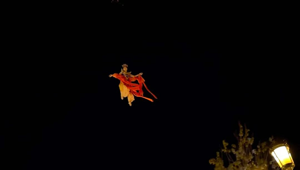 作為重頭戲,公主嶺市首個飛天威亞秀吸引不少游客前來參觀,身著國風漢服的“美人”在空中舞蹈、輕盈婀娜,儼然成為街區(qū)一枚獨特的“流星”。游客爭相在網(wǎng)紅通道打卡,排隊與現(xiàn)場的“小演員”合影,滿足了不同年齡段人群游玩需求。